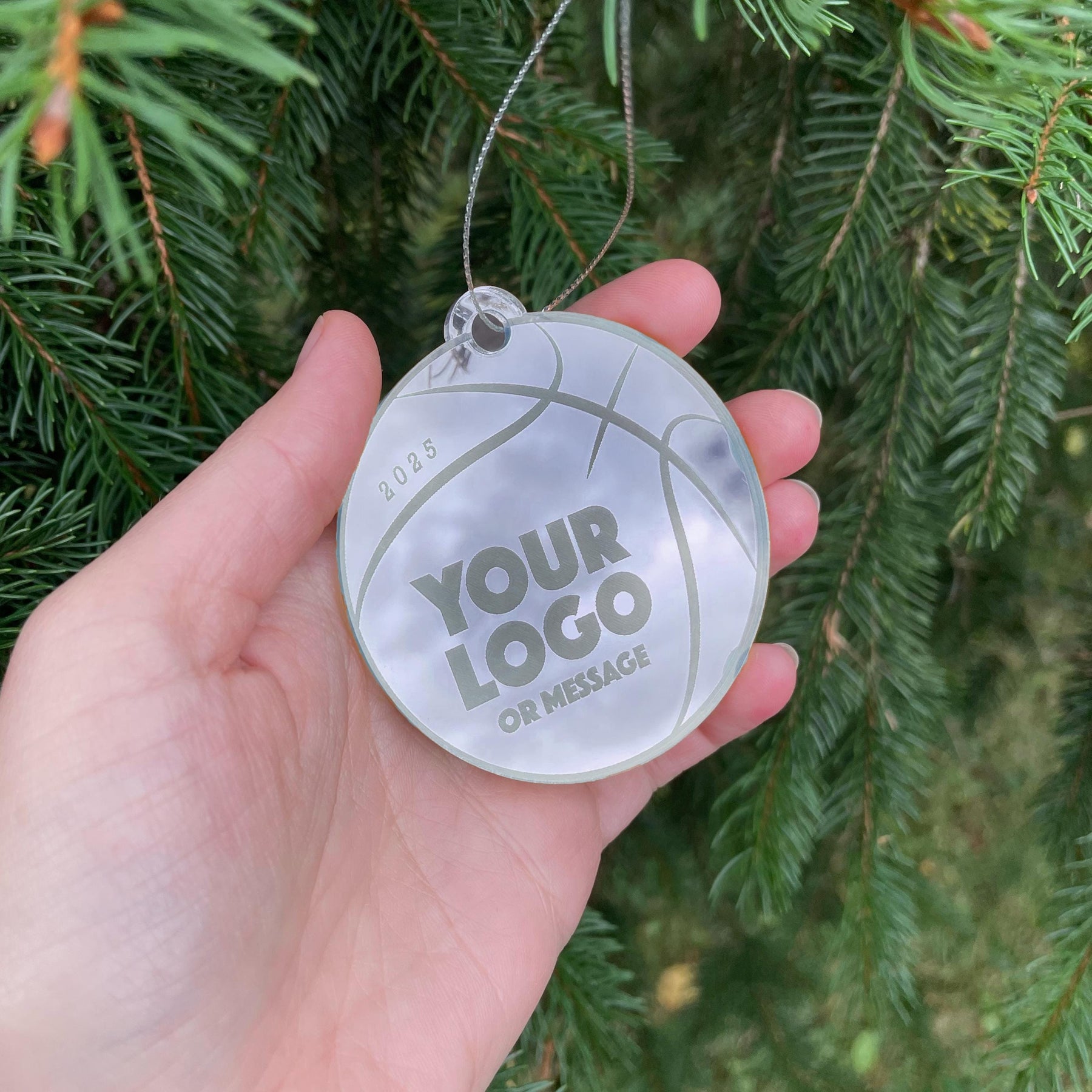 Custom Basketball Team Christmas Tree Ornaments, Bulk Wholesale Logo Sports Team Gifting, Corporate Holiday Stocking Stuffers