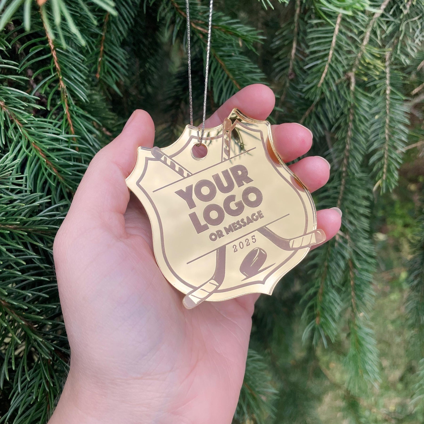 Celebrate your sports team wins this year with our Custom Christmas Tree Ornaments to celebrate the holiday season. This decorative ornament is engraved in reverse, removing the mirrored finish to expose clear acrylic, allowing the lights of the season to shine through magically! They make great corporate holiday stocking stuffers, personalized xmas decor within your office or employee / client / sports team member appreciation gifts to send out. Our laser engraved mirrored acrylic ornaments add a shining accent to your tree or garlands! Select one of our professional designs or work with our designer to create a completely unique ornament just for you.